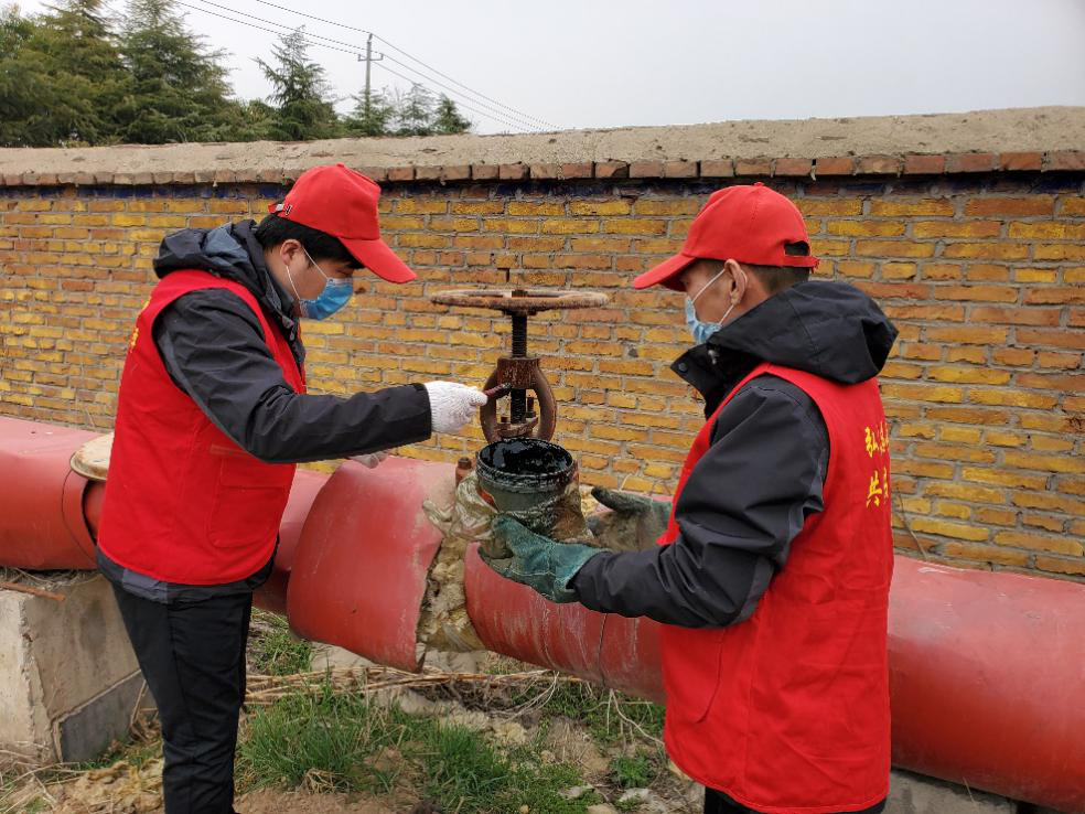 在疫情形勢處在最吃勁的關鍵階段,企業(yè)用戶面臨人手短缺,復工復產(chǎn)信心不足等困難,3月13日,菏投集團永恒蒸汽志愿服務隊一行6人在副總經(jīng)理吳景新的帶領下,來到菏澤信達生物科技有限公司。幫助企業(yè)排查安全隱患,檢查并清潔消防設施,宣傳安全生產(chǎn)與防疫防控知識,把老舊生銹的閥門重新刷上黃油保養(yǎng),針對管道破損的保溫棉進行拆除換新。