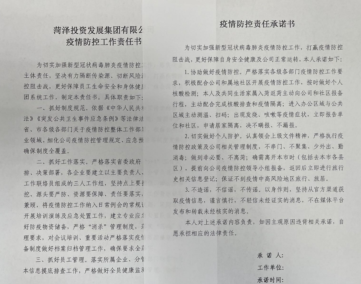 菏投集團召開疫情防控專題會 簽訂責任及承諾書