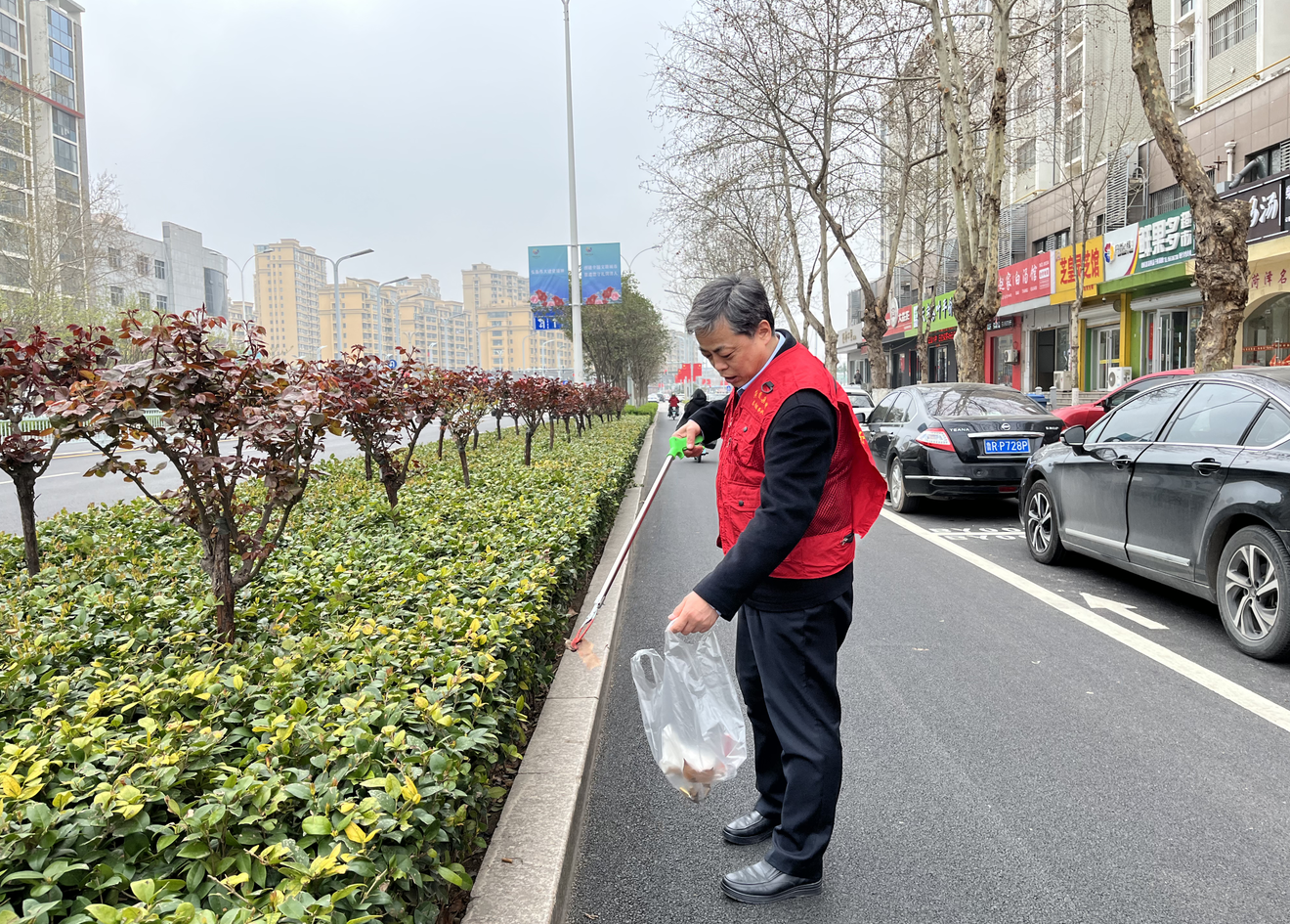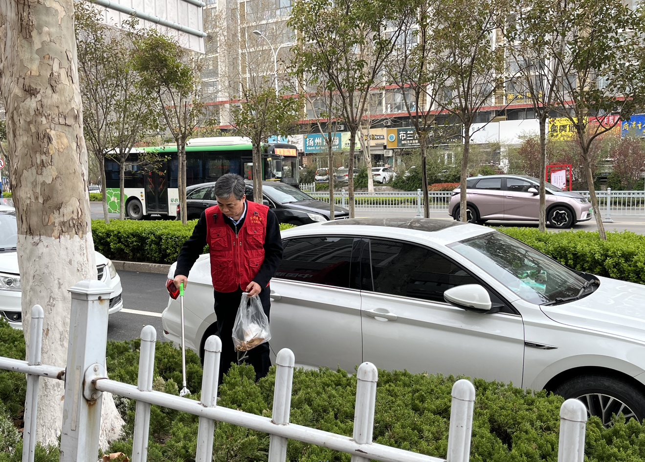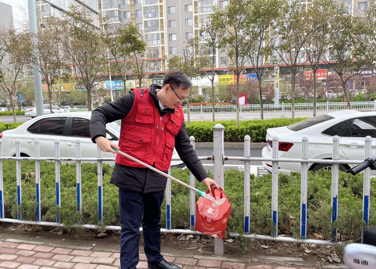 丁萬(wàn)國(guó)與志愿者一同來(lái)到包聯(lián)小區(qū)帝都花園沿街路段,穿上志愿服,拿著垃圾鉗、環(huán)保袋等工具,沿著小區(qū)街巷清理公共區(qū)域、綠化帶等衛(wèi)生死角垃圾,規(guī)整非機(jī)動(dòng)車擺放。