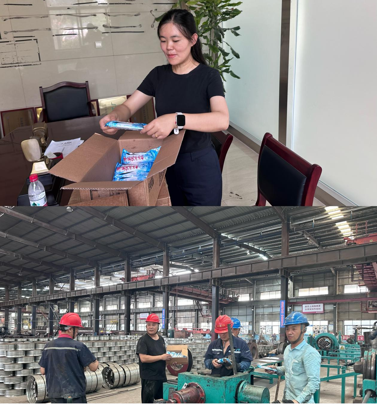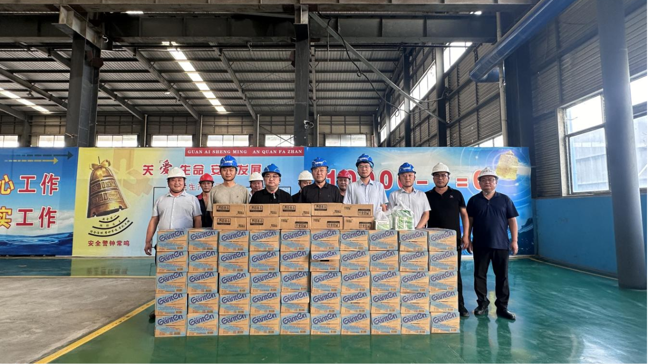 吳光勇一行詳細察看了一線員工的作業(yè)環(huán)境,對大家在持續(xù)高溫天氣下,始終堅守生產崗位、恪盡職守的敬業(yè)精神給予高度評價。隨后,吳光勇與隨行人員一同為員工分發(fā)了冰鎮(zhèn)飲品、防暑藥品、清涼毛巾等物資,反復強調要將防暑降溫作為當前安全生產的重要環(huán)節(jié),合理調整作業(yè)時段,嚴格落實輪崗休息制度,確保在高溫環(huán)境下既能保障生產進度,又能守護員工健康。