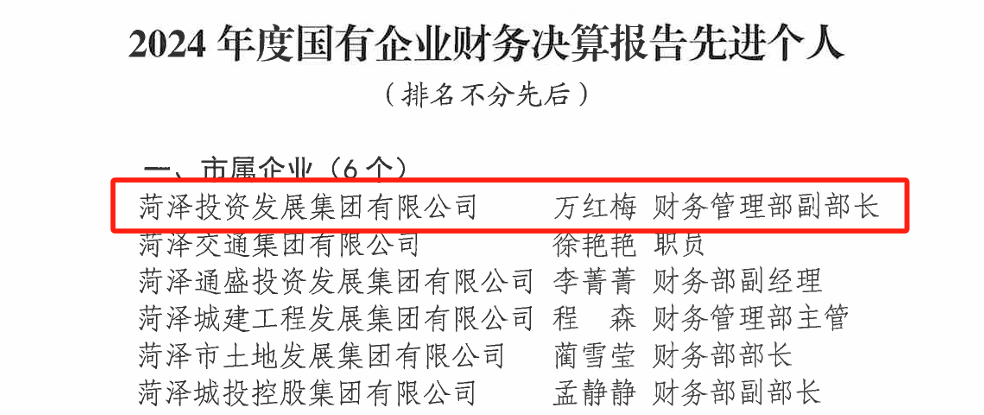菏澤投資集團(tuán)榮獲2024年度國有企業(yè)財(cái)務(wù)決算報(bào)告工作“先進(jìn)單位”稱號