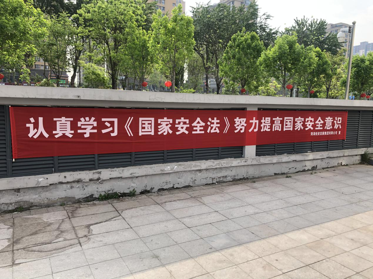 為切實做好國家安全教育日宣傳教育活動,根據(jù)市國資委下發(fā)的《2020年度市國資委普法責任清單》《市國資系統(tǒng)2020年全民國家安全教育日系列宣傳教育活動實施方案》(菏國資黨〔2020〕7號)文件要求,提高全民國家安全意識,增強國家安全責任?;顒悠陂g,菏投集團公司積極開展“國家安全教育日宣傳教育活動”,通過在公司周邊區(qū)域醒目位置懸掛宣傳條幅、利用電子顯示屏循環(huán)播放宣傳標語等形式進行宣傳,確保了普法教育宣傳效果,切實提高了公司系統(tǒng)員工全民國家安全法制意識,為進一步維護國家安全營造了良好的法治氛圍。