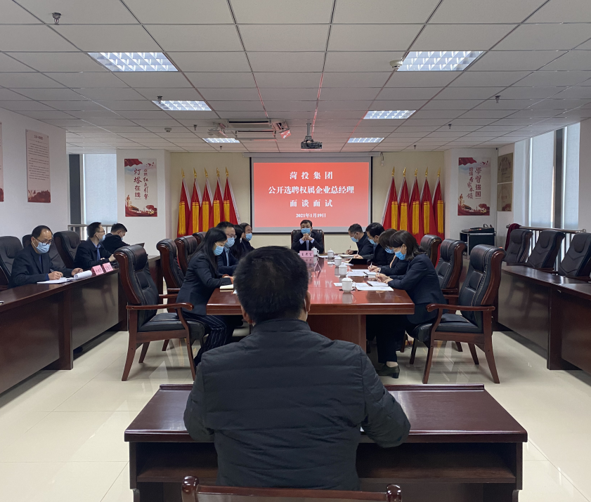 2021年1月19日,菏投集團(tuán)面向系統(tǒng)人員公開招聘權(quán)屬企業(yè)總經(jīng)理面談面試工作在集團(tuán)公司第二會議室進(jìn)行。9點40分在公司第一會議室召開考官會議,現(xiàn)場公布9名考官人員組成,10點面談面試正式開始。