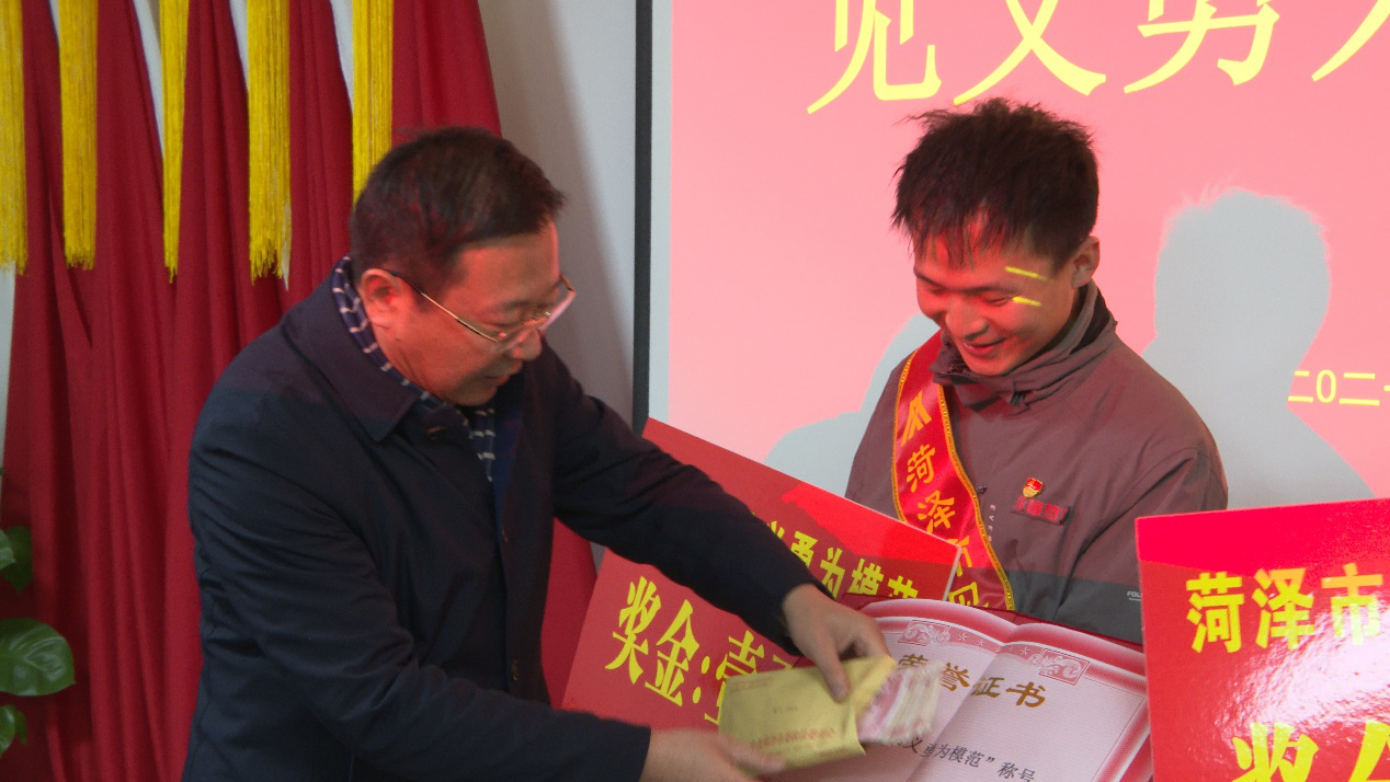 1月22日,菏澤市委政法委副書記李冰一行到菏澤永恒熱力有限公司,將“菏澤市見義勇為模范”榮譽證書、每人10000元現(xiàn)金見義勇為模范獎金及榮譽授帶,送到了賈季龍、岳躍勝手中。