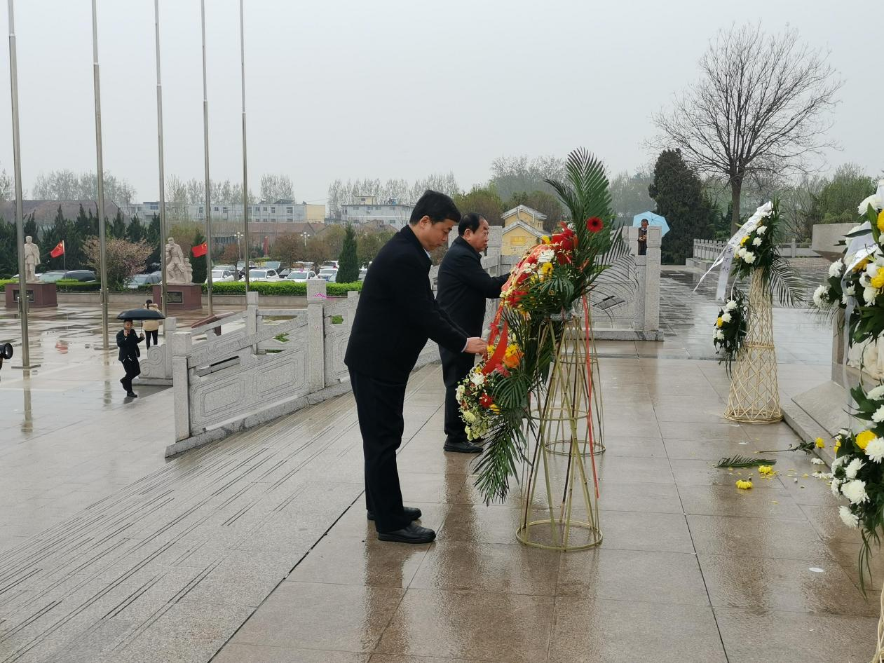 公司黨委副書記、總經(jīng)理丁萬國,黨委副書記郭菏玉代表公司向革命先烈敬獻花籃、整理挽聯(lián)
