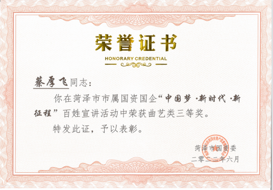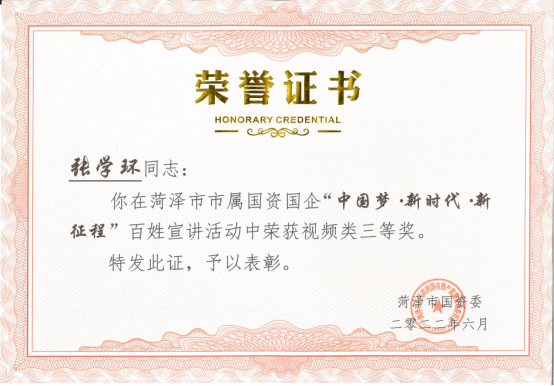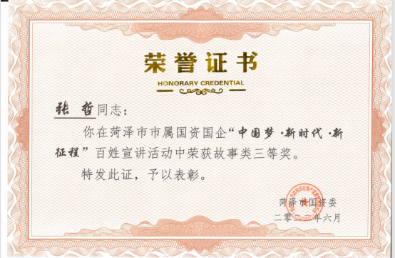 經(jīng)過激烈的角逐,菏投集團三名參賽選手均榮獲市屬國資國企“中國夢?新時代?新征程”百姓宣講活動“三等獎”。