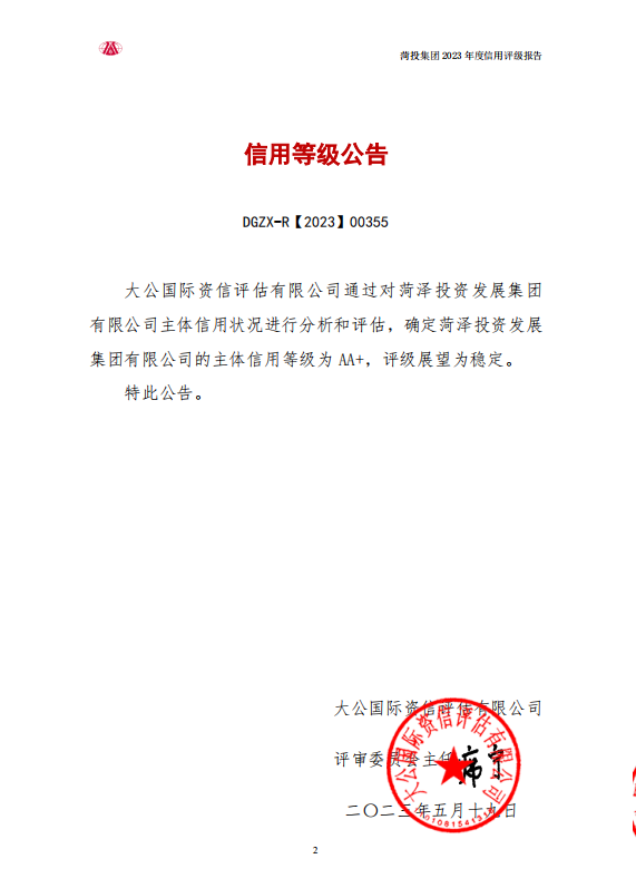 菏澤投資集團(tuán)連獲三家知名評(píng)級(jí)機(jī)構(gòu)評(píng)級(jí)認(rèn)定