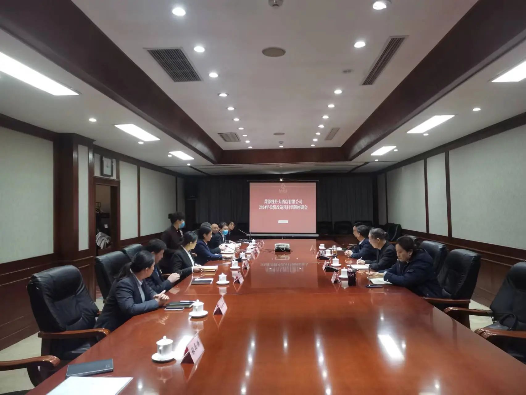 為優(yōu)化提升酒店形象,改善酒店整體環(huán)境,持續(xù)打造牡丹特色品牌,3月8日下午,牡丹大酒店召開投資預(yù)算與改造方案調(diào)研座談會,菏澤投資集團(tuán)黨委書記、董事長丁萬國,黨委副書記、總經(jīng)理祝傳隨,黨委委員、副總經(jīng)理肖培飛一行到會指導(dǎo),會議由酒店總經(jīng)理李清宇主持,酒店班子及綜合管理部、工程部有關(guān)人員參加會議。