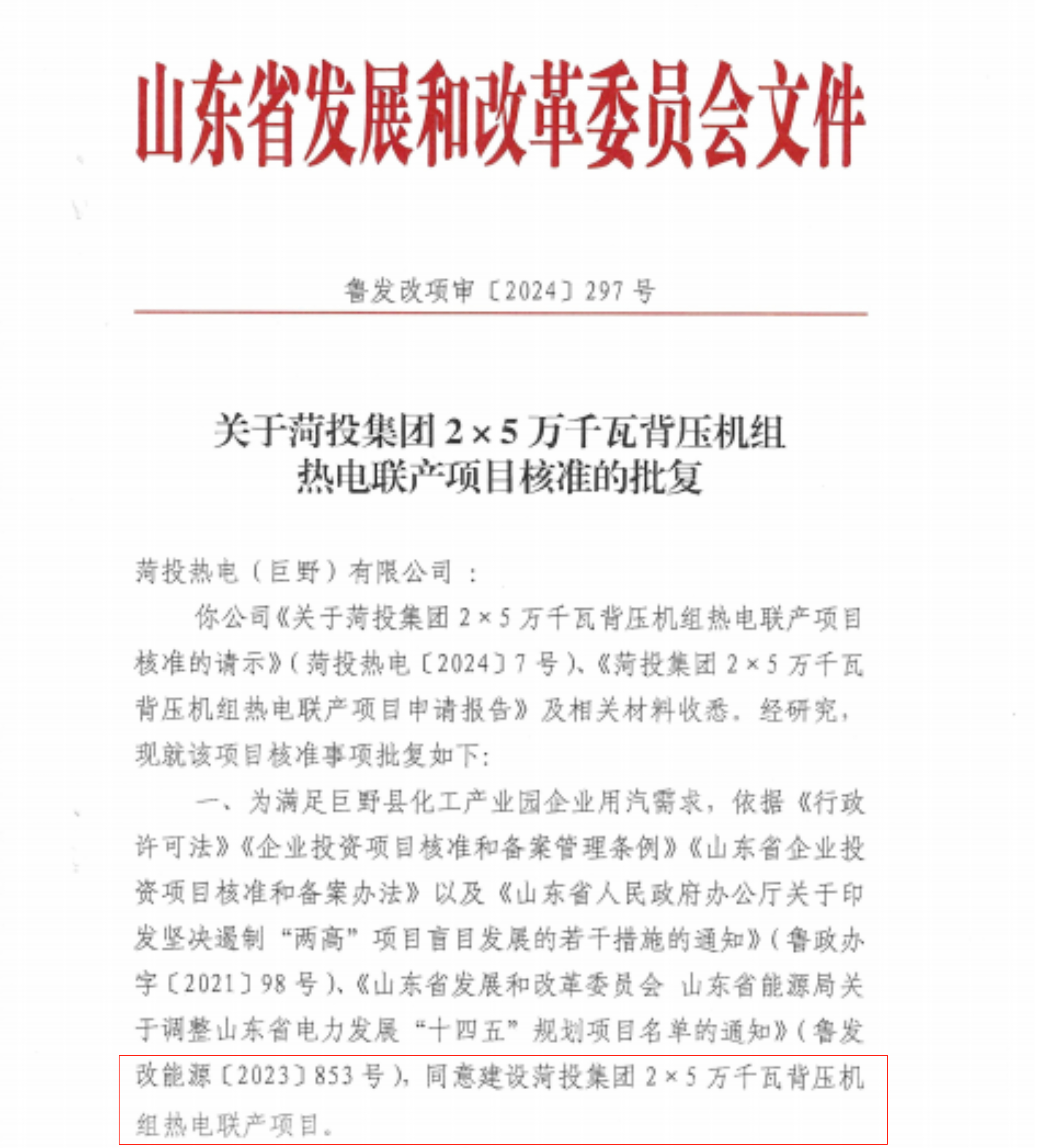 菏投集團(tuán)熱電聯(lián)產(chǎn)項目獲得省發(fā)改委核準(zhǔn)批復(fù)