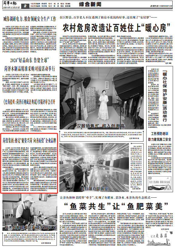 菏澤日報刊發(fā)文章:菏澤投資集團擦亮“聚資興菏 向善而投”企業(yè)品牌