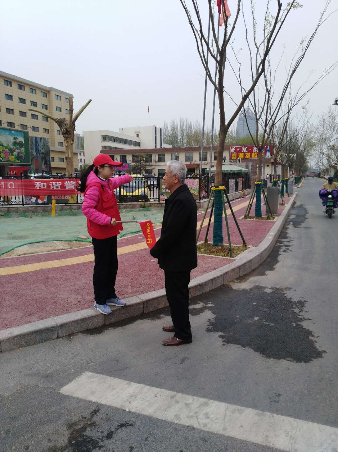 為宣傳文明出行理念,提高市民文明交通意識(shí),菏投集團(tuán)志愿者服務(wù)隊(duì)8名隊(duì)員于2019年3月29日分上午、下午兩批次在市區(qū)中華路與華英路交叉路口開展文明交通勸導(dǎo)活動(dòng)。活動(dòng)現(xiàn)場(chǎng),志愿者穿戴紅色志愿服務(wù)衣帽,手持引導(dǎo)旗幟,對(duì)亂闖紅燈、逆向行駛、阻礙交通等不文明行為進(jìn)行耐心勸導(dǎo),并在上學(xué)放學(xué)時(shí)間段對(duì)過往中小學(xué)生進(jìn)行文明交通的宣傳和引導(dǎo),把“文明從我做起”的種子種在孩子們的心中。