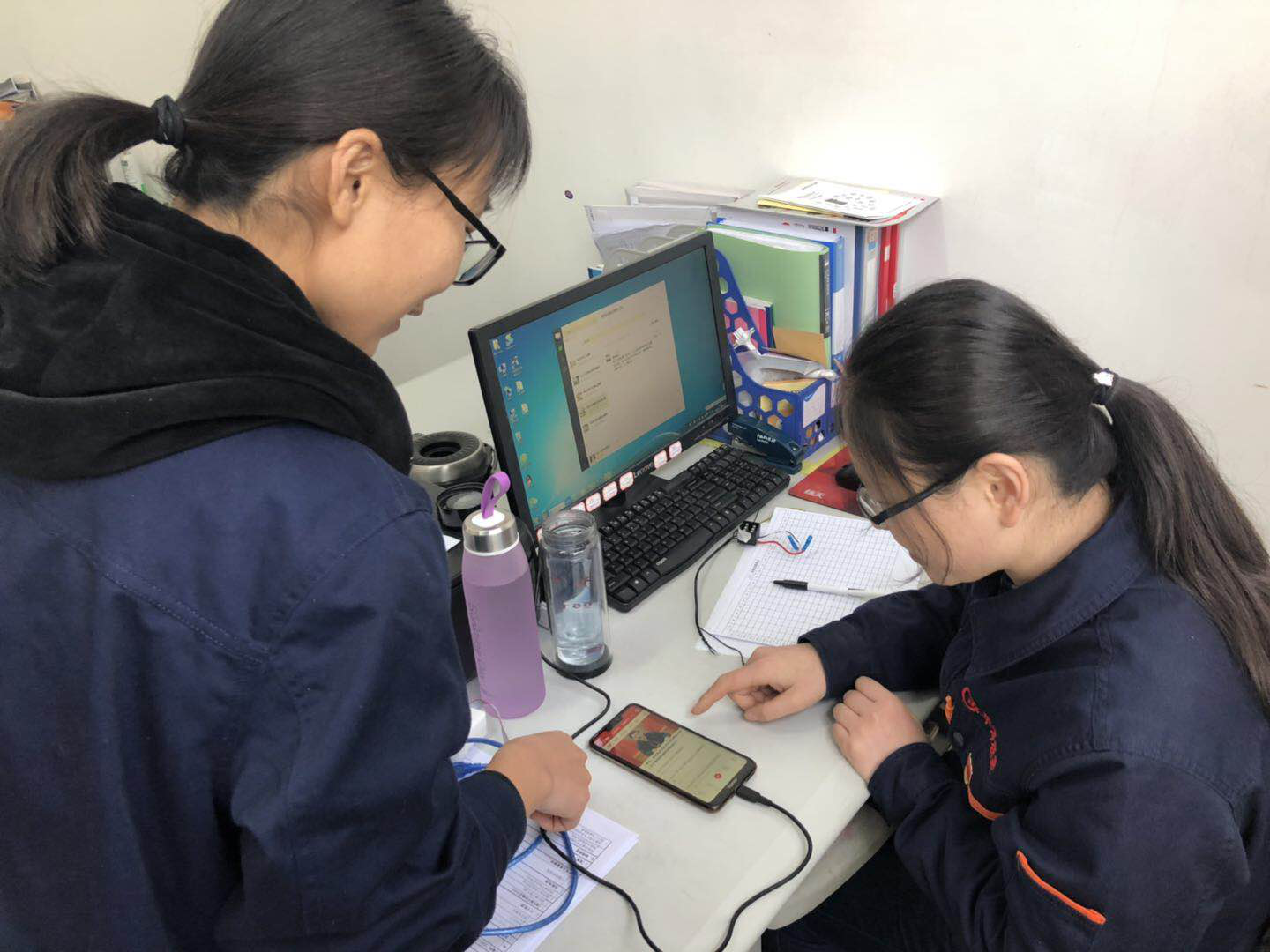 圖4:山東華澤精密模塑有限公司產(chǎn)品研發(fā)部,4月2日,劉娜娜同志在學(xué)習(xí)習(xí)近平總書記的《關(guān)于堅持和發(fā)展中國特色社會主義的幾個問題》后,向王倩同志推薦學(xué)習(xí)內(nèi)容。