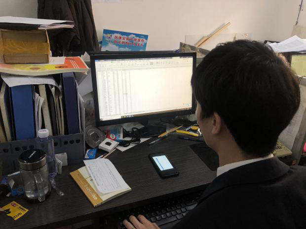 圖5:菏澤牡丹大酒店有限公司“學(xué)習(xí)強國”管理員孟星宇,正在統(tǒng)計“學(xué)習(xí)強國”學(xué)習(xí)排名,逐人進行核對計算得分,積極與得分低個人取得聯(lián)系,了解清楚情況,進行專門輔導(dǎo)。