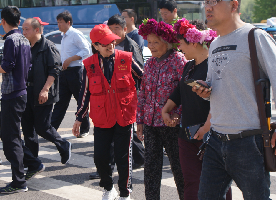 志愿者為游客指引出行路線
