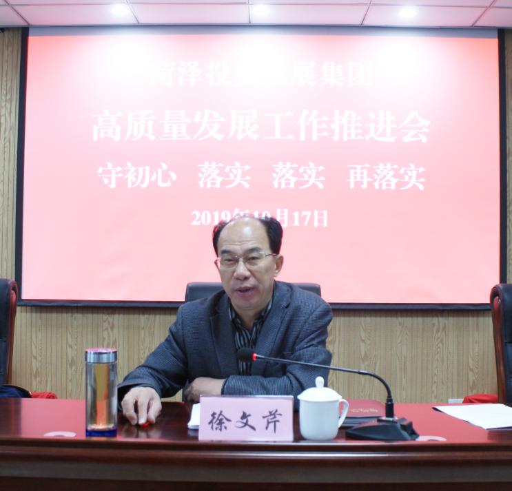 為貫徹落實(shí)“不忘初心、牢記使命”主題教育的總要求,確保圓滿完成全年經(jīng)營(yíng)目標(biāo),10月17日上午,菏澤投資發(fā)展集團(tuán)高質(zhì)量發(fā)展工作推進(jìn)會(huì)在公司第六會(huì)議室召開(kāi)。公司黨委書記、董事長(zhǎng)徐文芹主持會(huì)議并講話,公司市管干部、公司合署辦公機(jī)構(gòu)全體人員、各企業(yè)中層副職以上干部參加了會(huì)議。