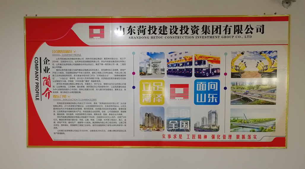 山東菏投建設(shè)投資集團有限公司(簡稱菏投建設(shè)集團)屬國有控股企業(yè),成立于2004年,注冊資本2億元。由菏澤投資發(fā)展集團有限公司、邢臺市政建設(shè)集團股份有限公司、山東瀚文投資有限公司強強聯(lián)合共同出資設(shè)立。集團下轄一級控股公司三家。