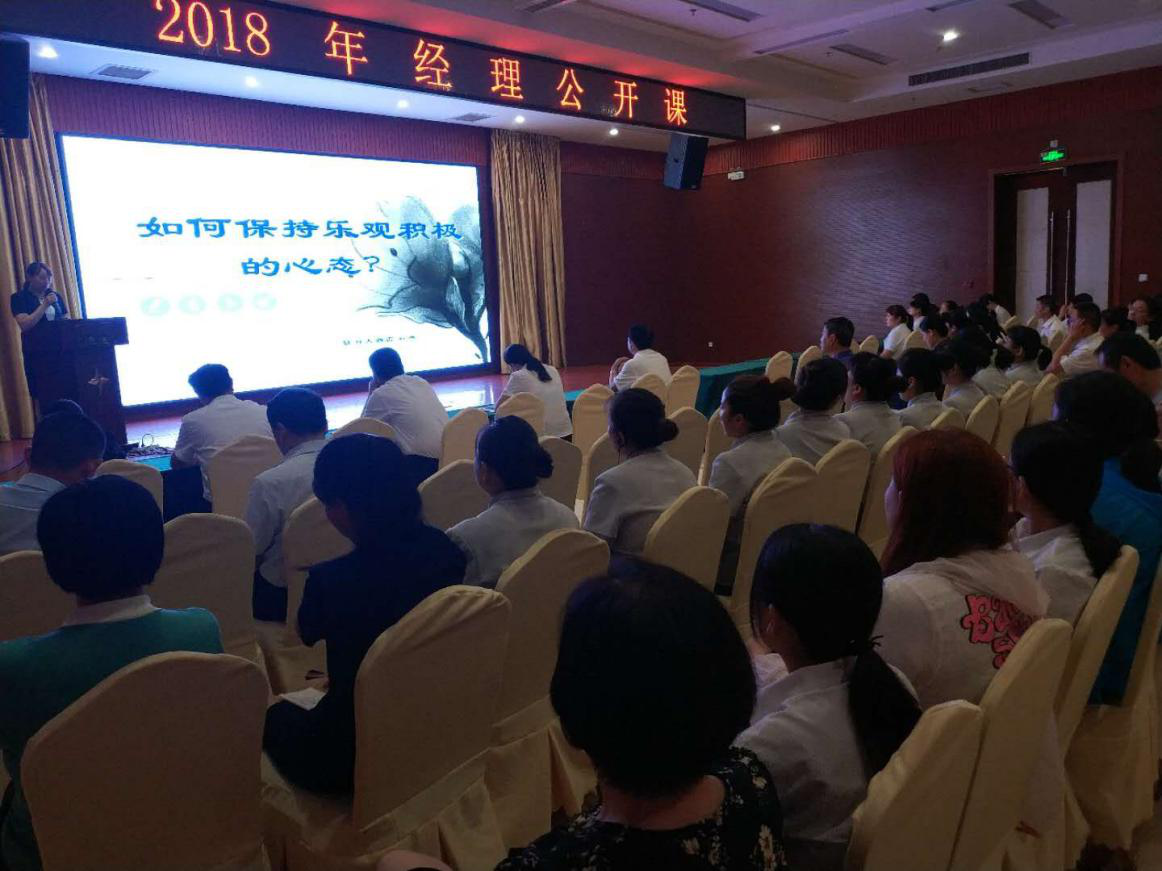 根據(jù)酒店年度培訓(xùn)計(jì)劃,2018年6月20日下午,酒店全體員工在酒店一樓貴賓廳參加經(jīng)理公開課,由總經(jīng)理助理石鴻進(jìn)行了題為《如何保持樂觀積極的心態(tài)》授課。