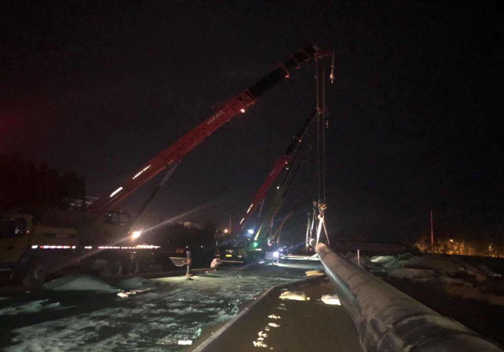 5月27日晚,湘江路過廣州路一級熱網(wǎng)項目第一根拉管順利完工。