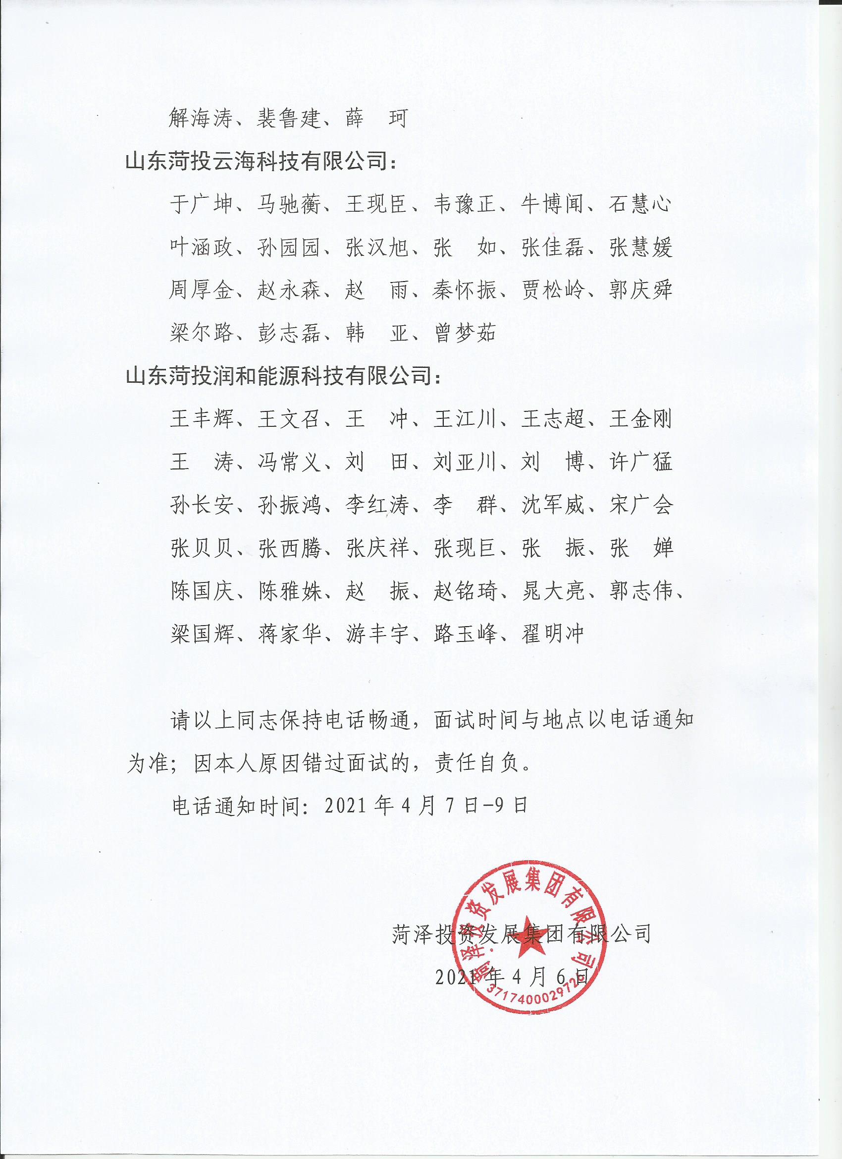 菏澤投資發(fā)展集團有限公司公開招聘面試人員名單公示